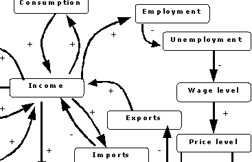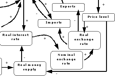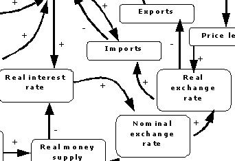 A second negative loop is then emerged: a rise in exports will eventually be absorbed by an increase of real exchange rate. |