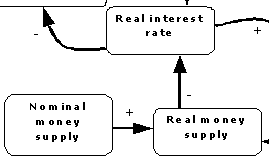 6. it also produces an increase of the real interest rate, given a fixed real money supply, which in turn depends on a deliberate choice of the central bank not to increase the nominal money supply (not to print money, not to allow more credit from banks to the economy). |